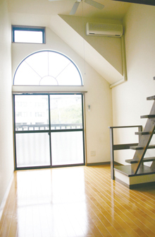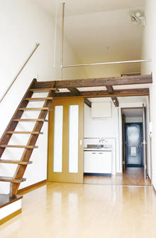 弊社の特徴でもある奥行きと高さのあるロフトを全部屋につけました。狭小地でも広いスペースを数多く作る秘訣です。とはいえ今回は十分な敷地面積でしたのでロフトと含め、23.18uの1Kを18世帯建築することができました。
